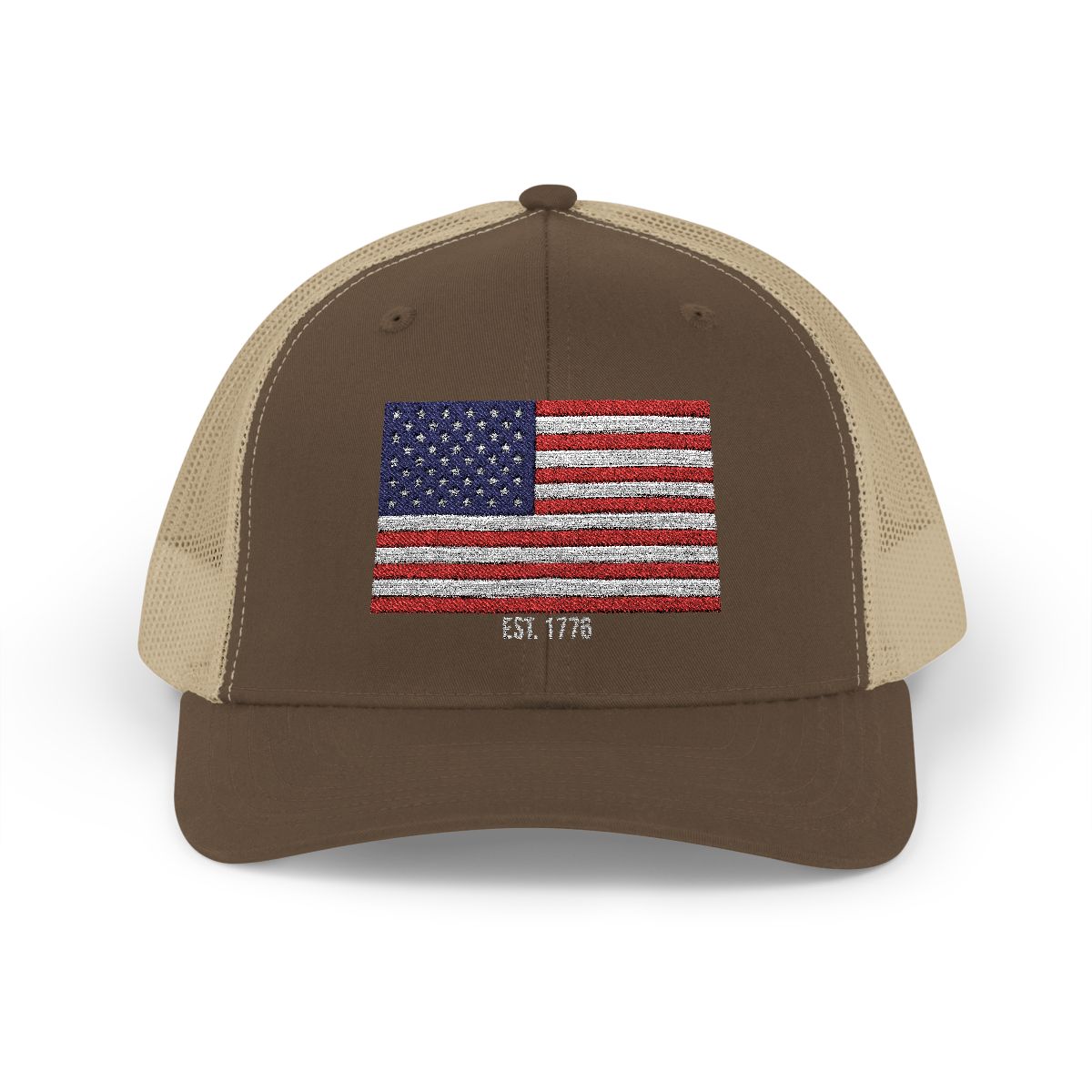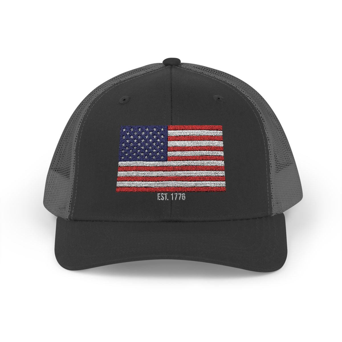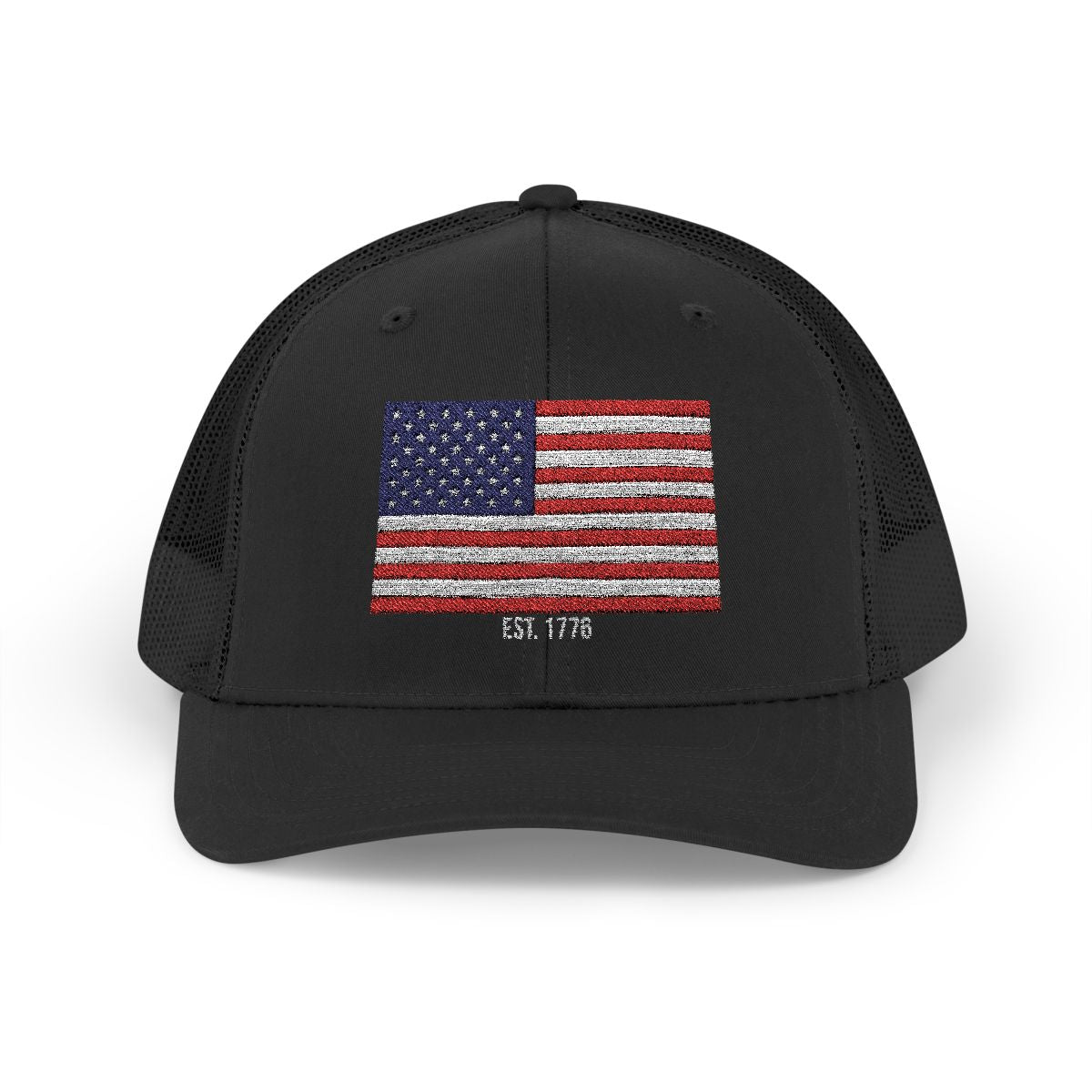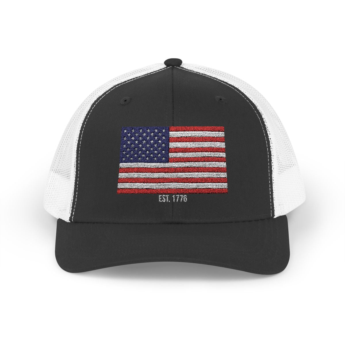 This all-American bundle features our bold EST. 1776 flag design on soft tees, cozy hoodies, patriotic baby onesies, and rugged mesh-back hats.