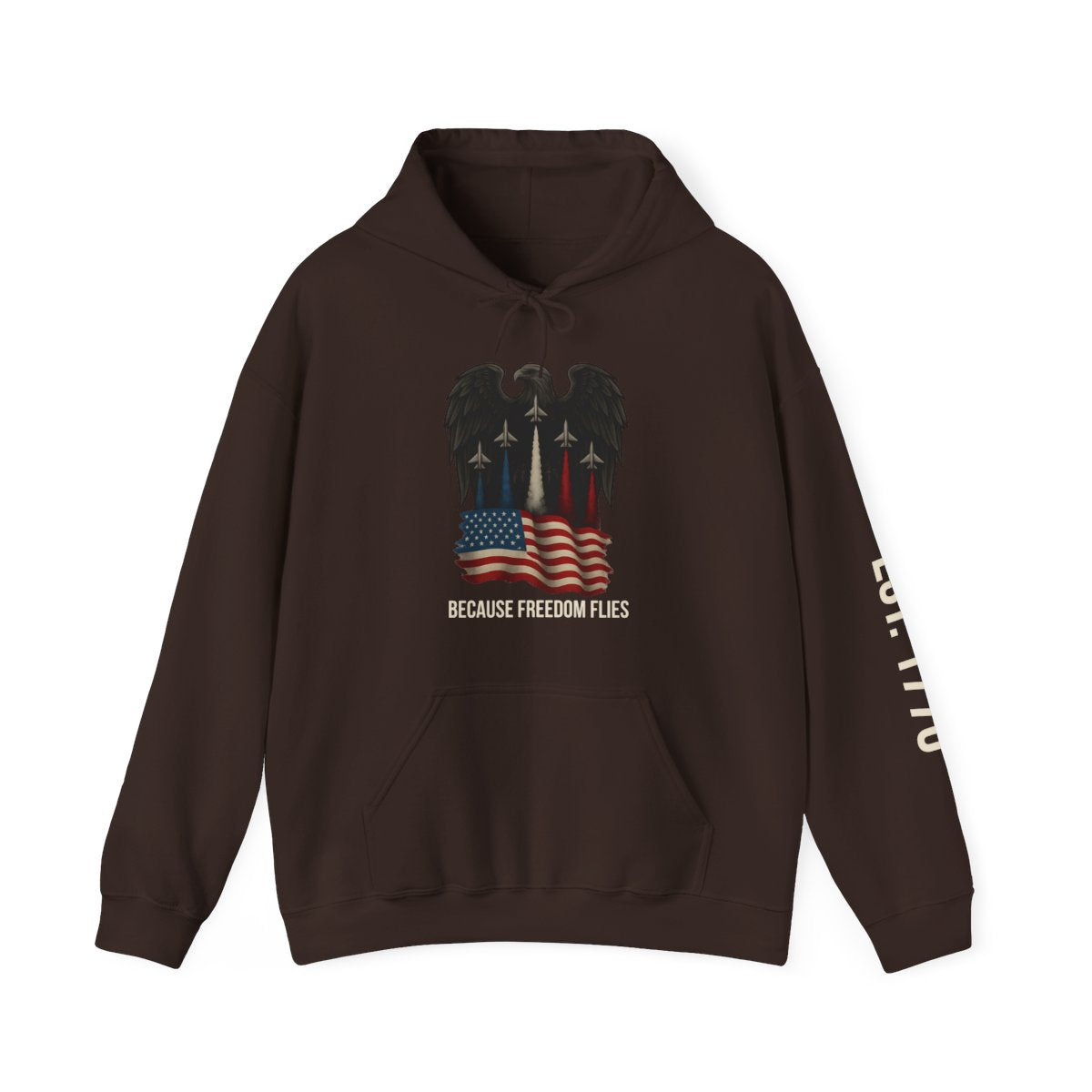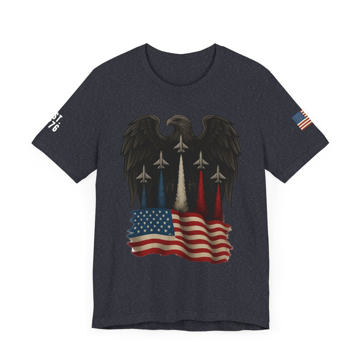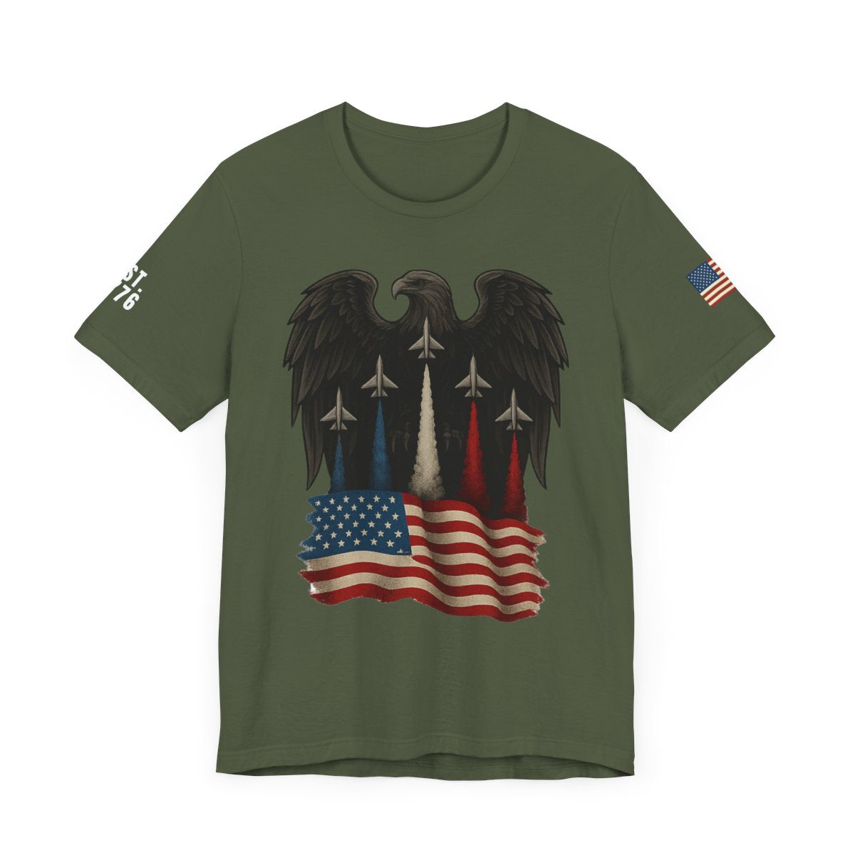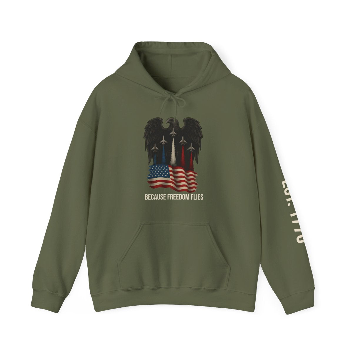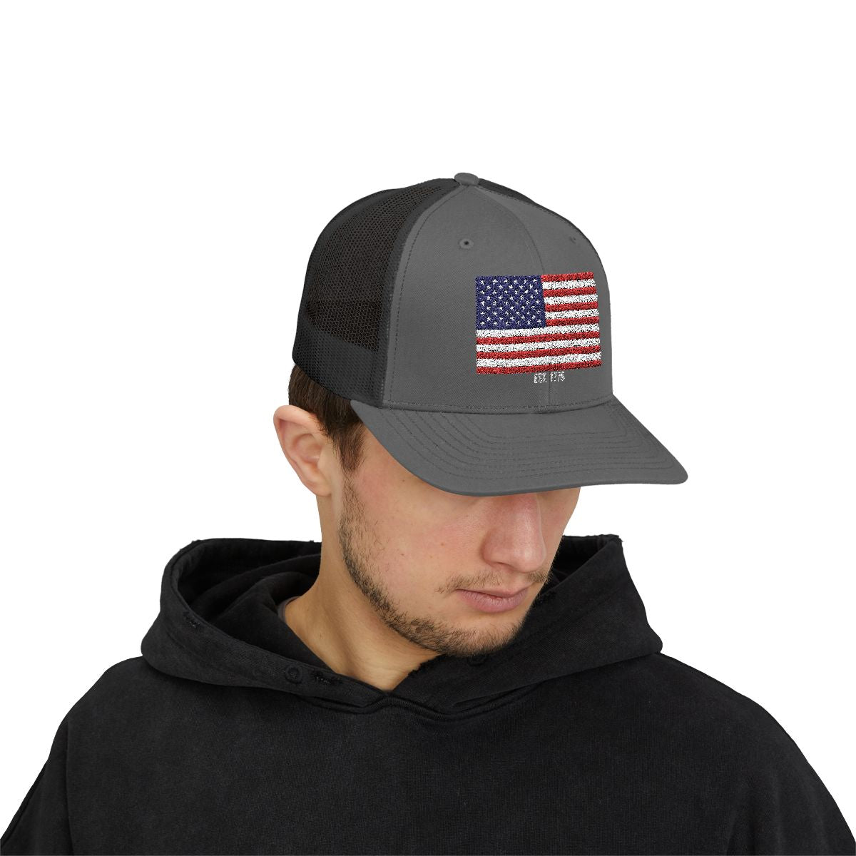This all-American bundle features our bold EST. 1776 flag design on soft tees, cozy hoodies, patriotic baby onesies, and rugged mesh-back hats.