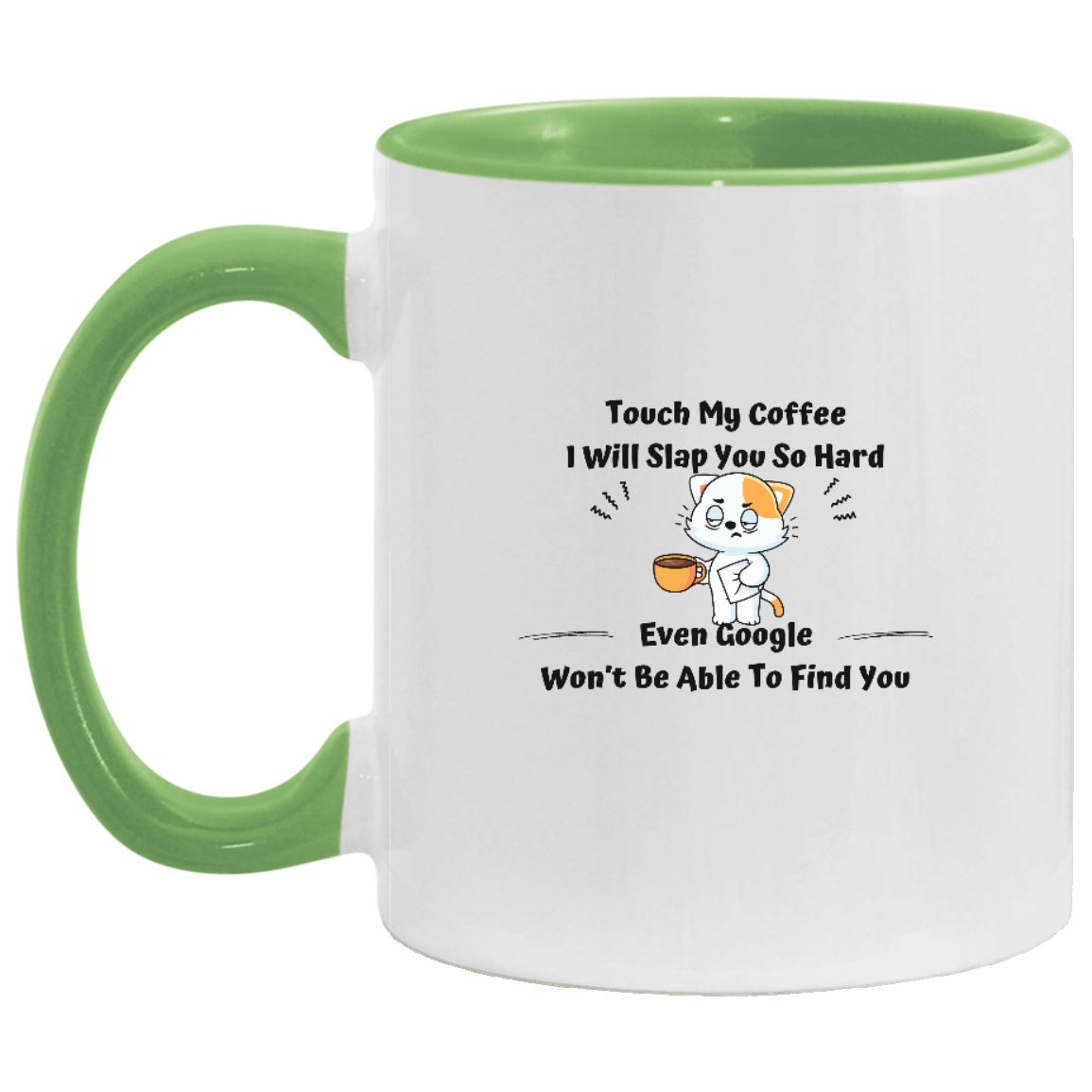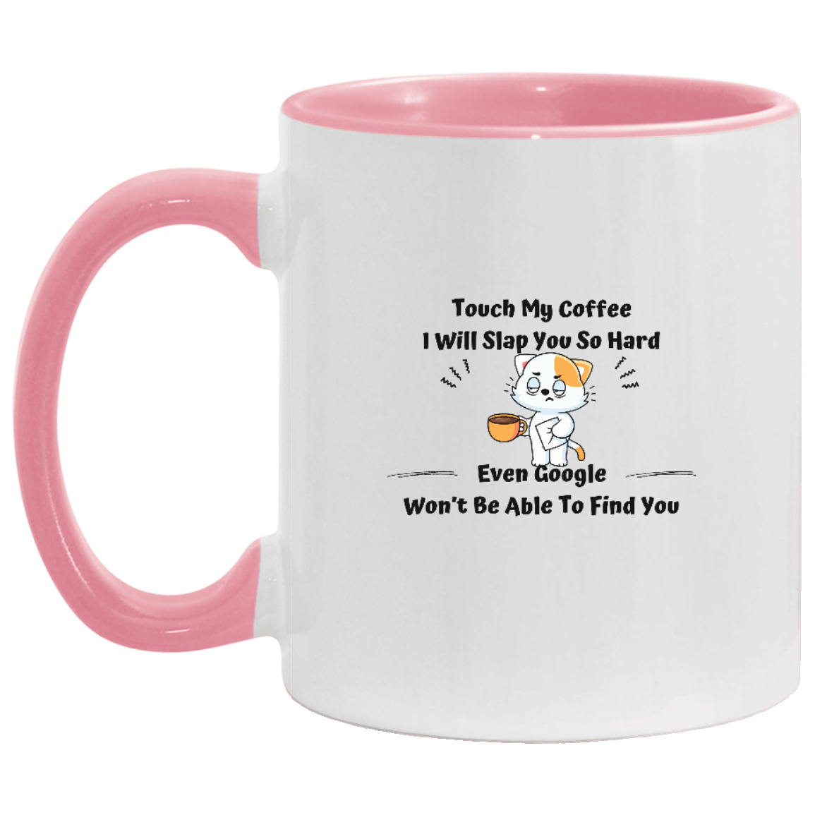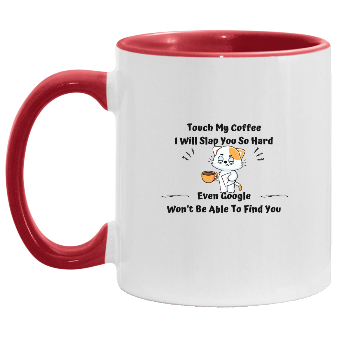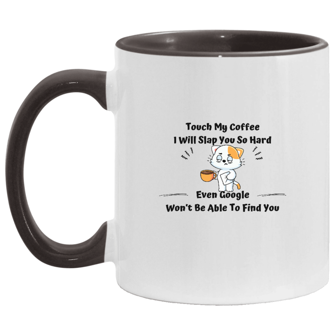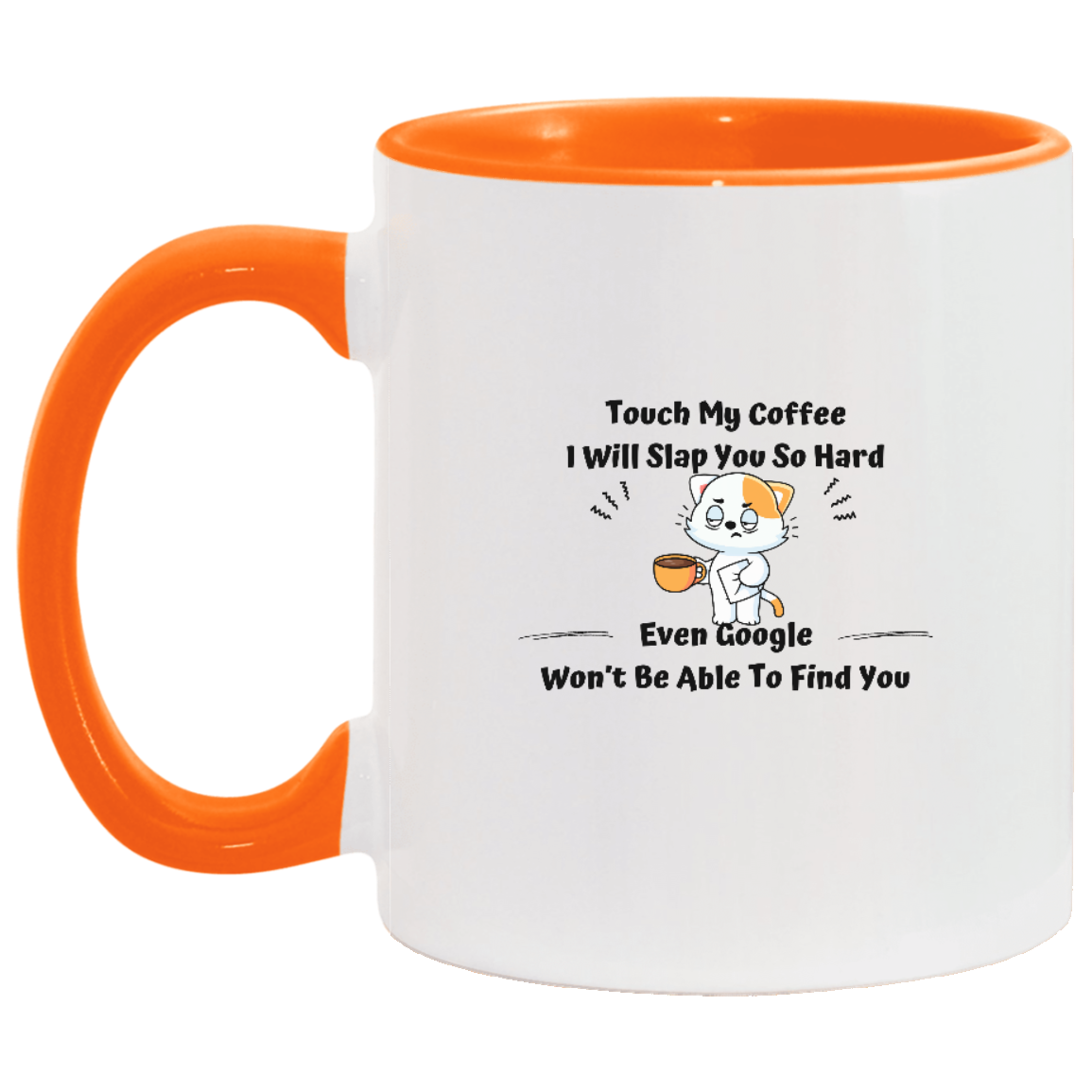 - High quality ceramic mug with two-tone rim, interior, & handle