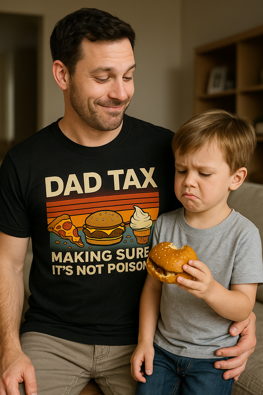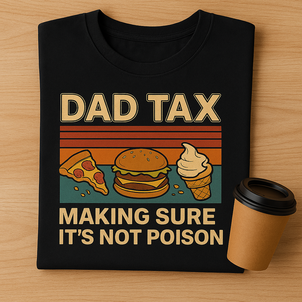 This Dad Tax shirt is the official uniform for every father who “just wants to make sure it’s not poison.” 🍕🍔🍦