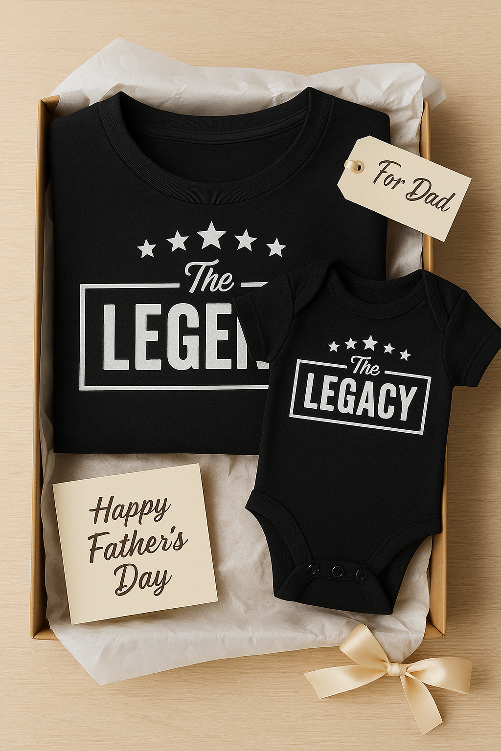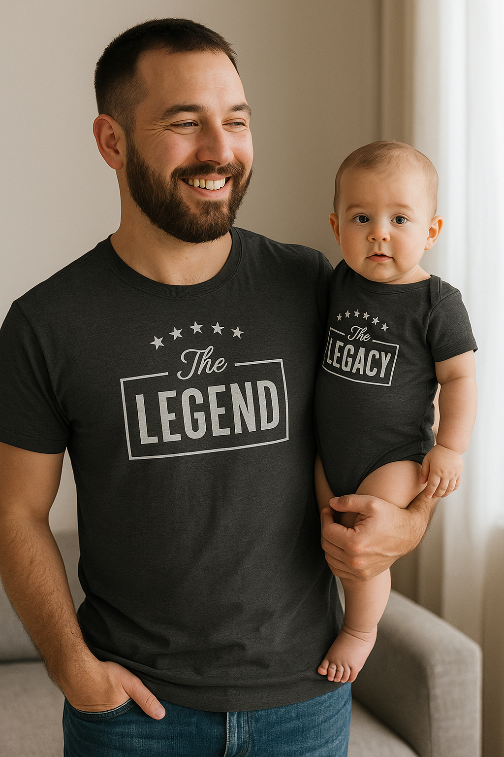 🖤 The Legend & Legacy™ Matching Dad and Baby Shirt + Onesie Set