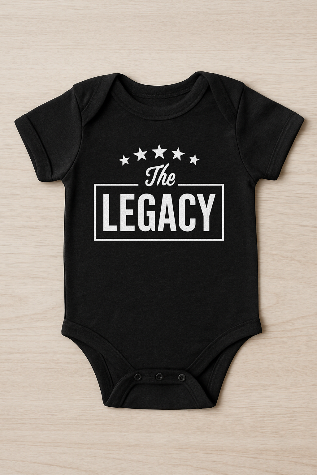 🍼 “The Legacy” onesie for the little one — soft, sweet, and packed with meaning.