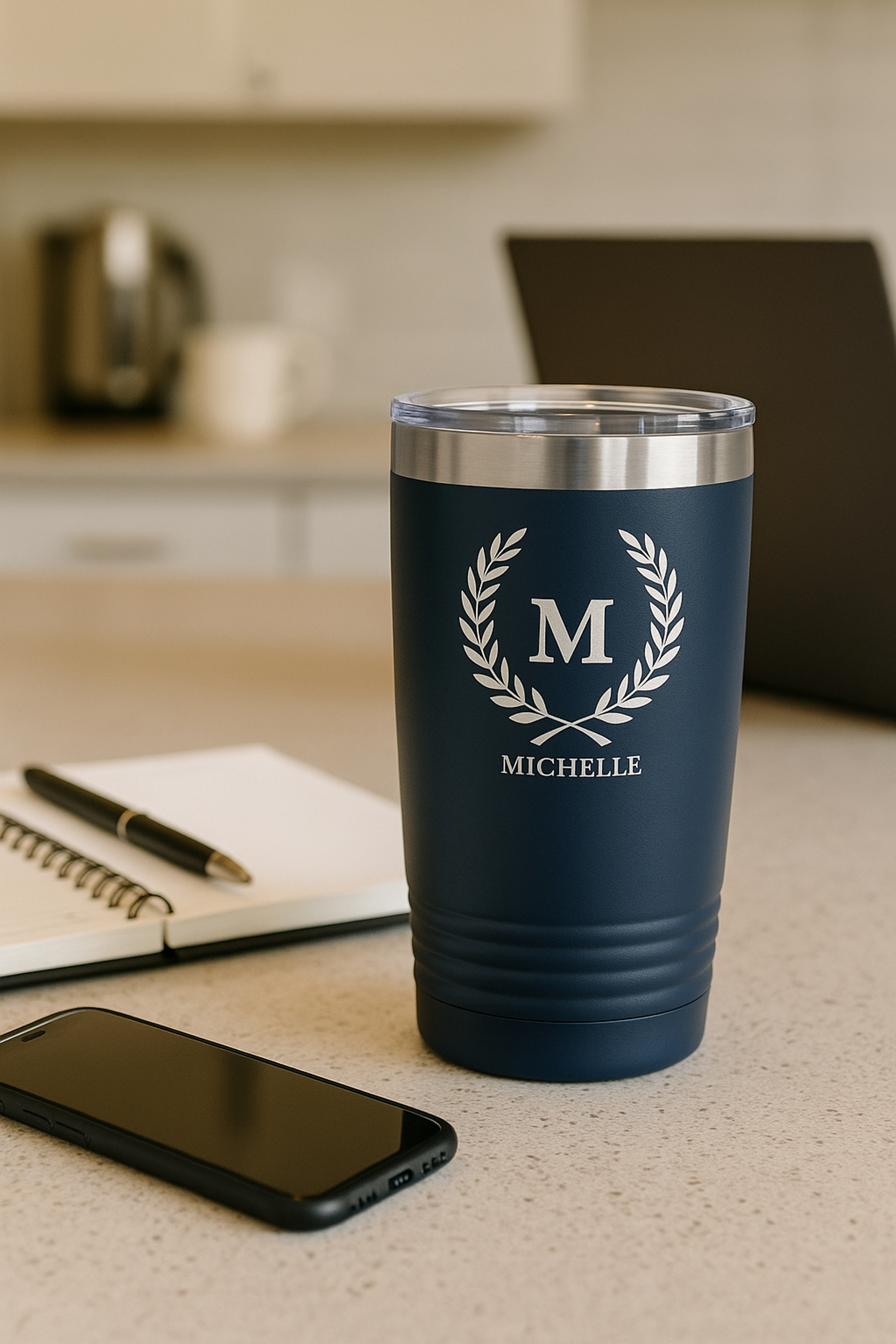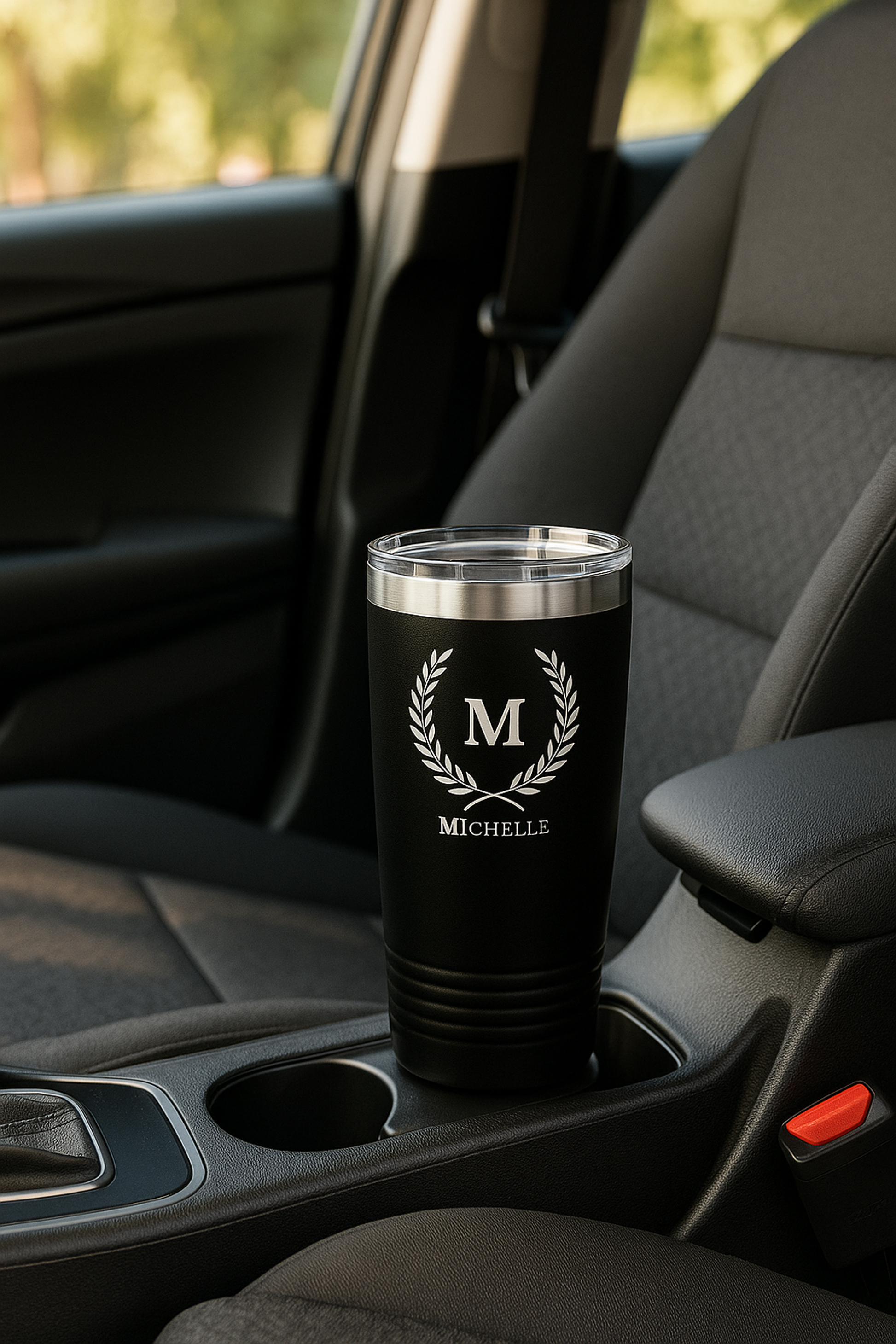 Each piece is deeply laser-engraved with your chosen monogram and name — no vinyl, no fading — just permanent elegance made for real life.