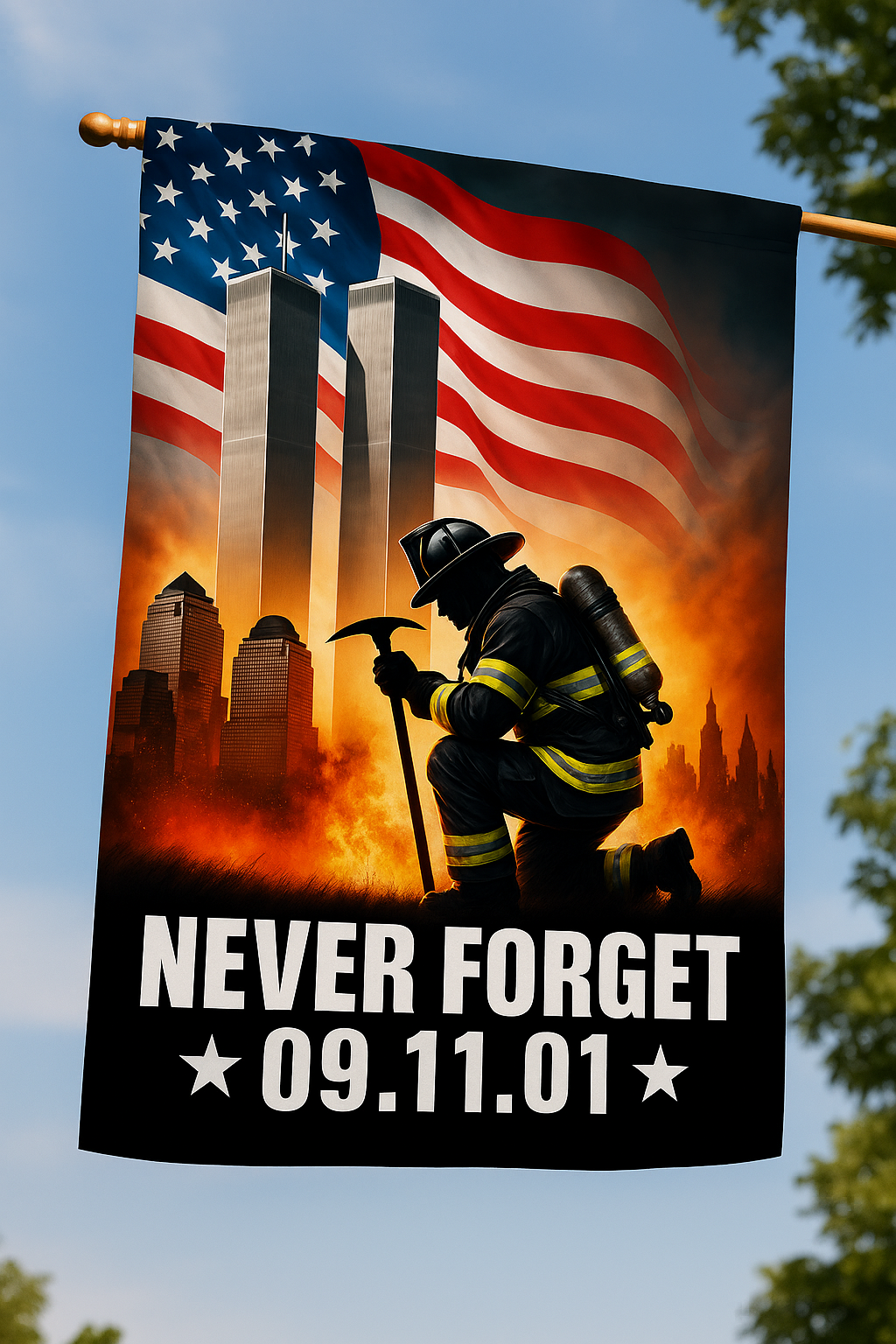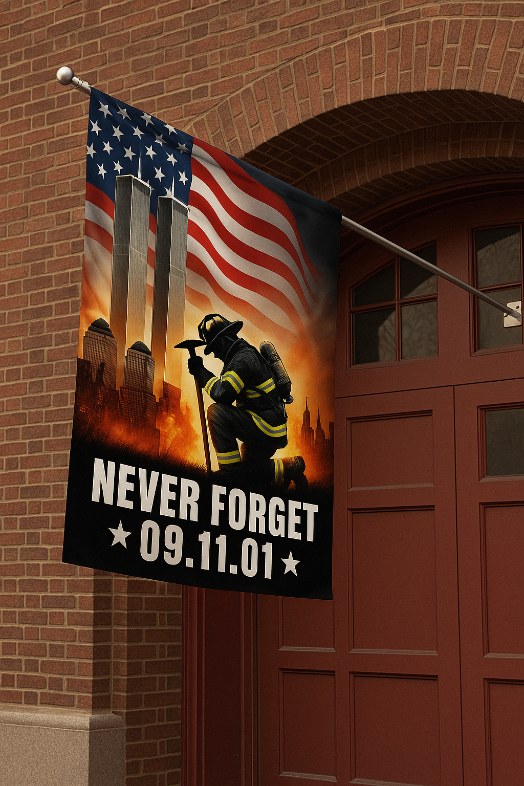 Transform your home into a powerful memorial with our exclusive 9/11 tribute flag collection. Each design honors the heroic firefighters and first responders who answered the call on September 11th, 2001.