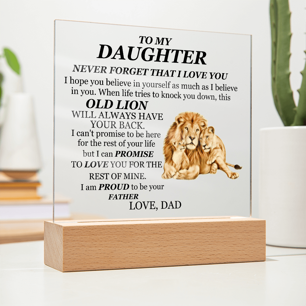 Your plaque will be crafted from premium acrylic with a professionally printed design for a polished look. It comes with a stylish wooden LED base, and you can choose between a USB plug-in option OR a cordless battery-operated option (requires 2 AAA batteries, not included). Both LED bases feature 7 vibrant colors, allowing the user to customize the lighting with various color changes and dynamic cycles.