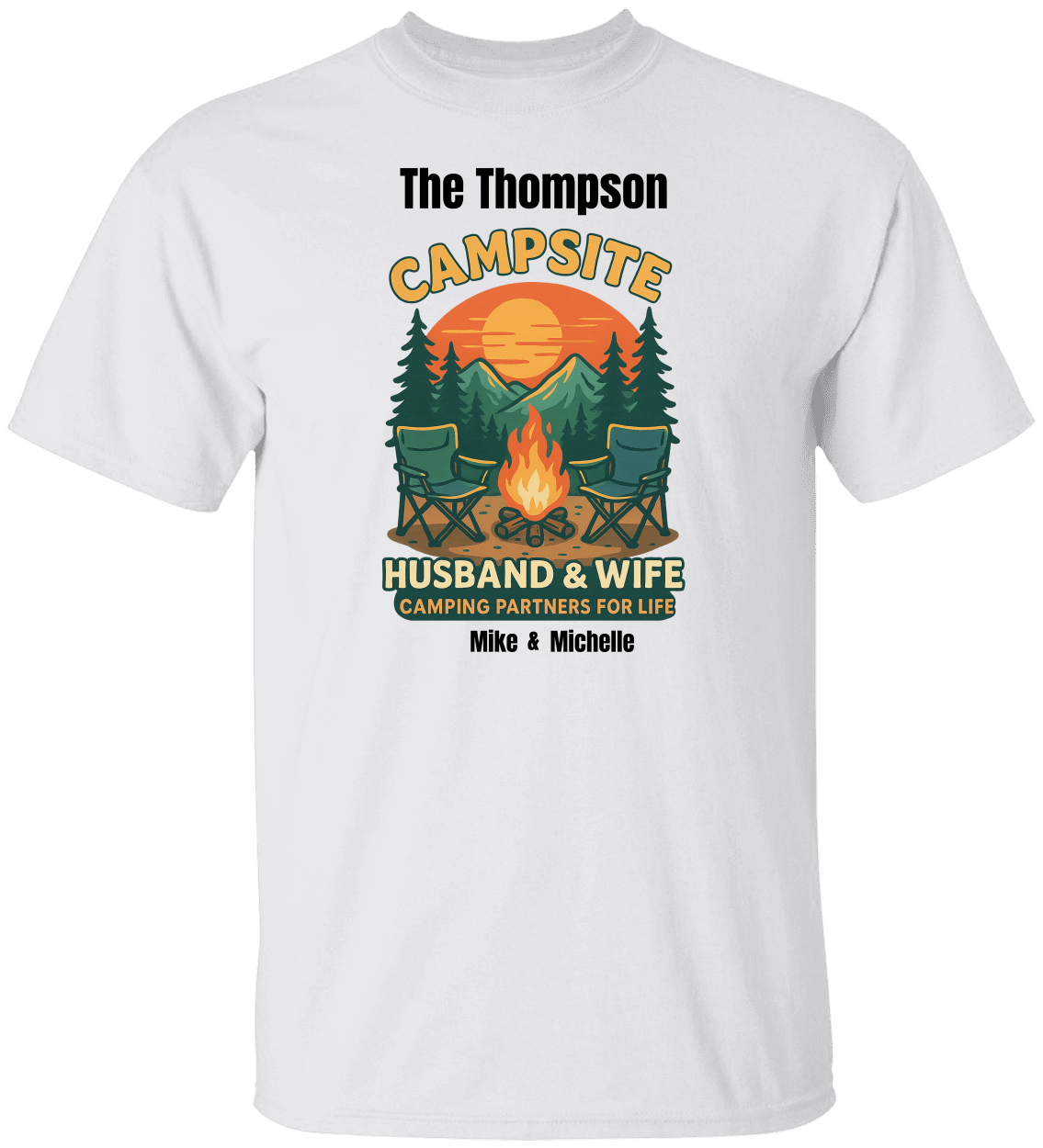 Personalized Camping Couple T-Shirt – "Campsite" Summer Gift for Husband & Wife