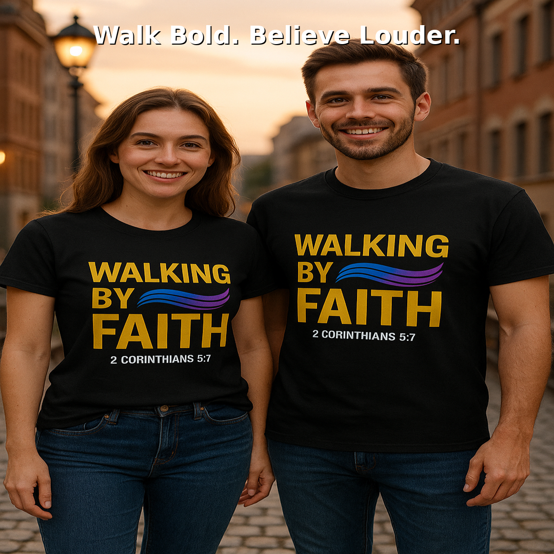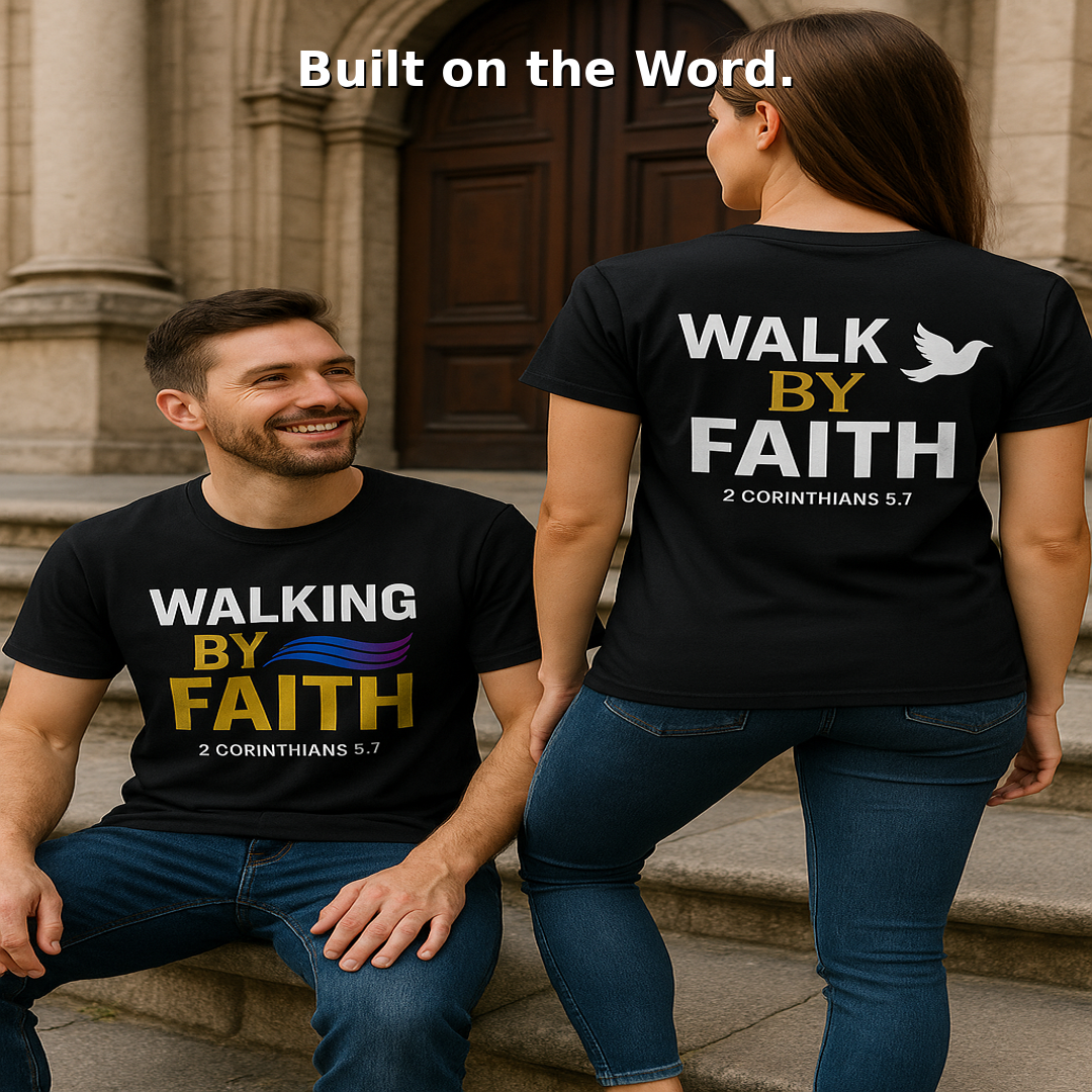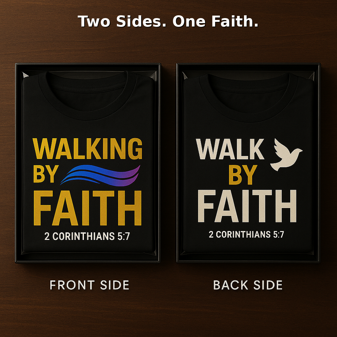 This “Walk By Faith” t-shirt is a powerful expression of what it means to walk with purpose. The front design declares your devotion, while the back features a soaring dove and scripture reference that reminds you to lead with love and truth. Designed for both men and women of faith, this unisex tee offers a premium feel, flattering fit, and lasting comfort.